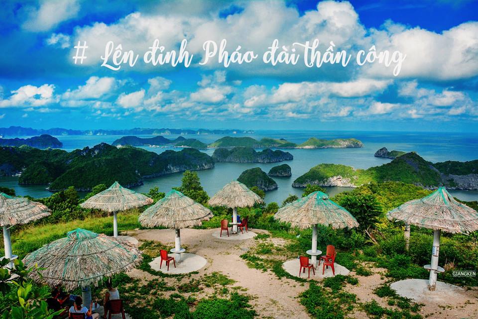 Nếu muốn ngắm toàn cảnh Cát Bà, hãy lên đỉnh Pháo đài Thần công cao 177 m. Không chỉ là di tích lịch sử với những chiến tích oanh liệt của dân đảo, nơi đây còn có vị trí đắc địa 3 mặt hướng biển. Còn gì tuyệt vời bằng vừa nhâm nhi cà phê vừa ngắm hoàng hôn lãng mạn?